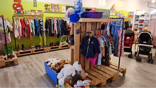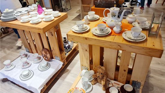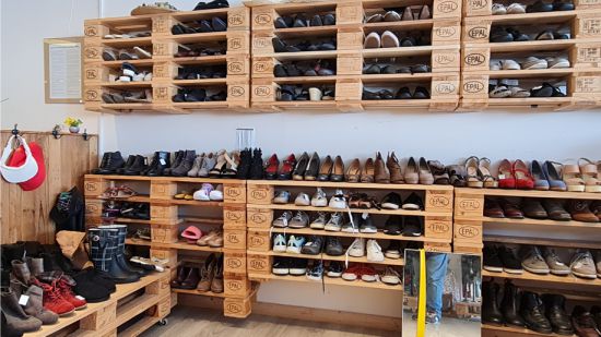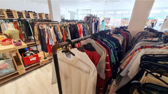 Das Sortiment besteht aus Sachspenden wie Möbel, Kleidung und Nützliches für den Alltag. Unsere Kleiderständer bestehen aus Palettenmöbeln und alten Holzkisten. Somit unterstützen wir den Aspekt der nachhaltigen Verwendung von Gegenständen und fördern das Upcycling, um der sozialen und ökologischen Umwelt etwas zurück zu geben.